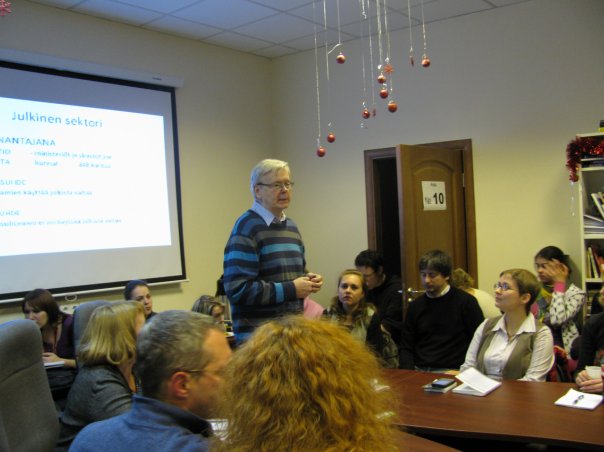 На встрече выступала консул по культуре Финляндии г-жа Ритва Каттелус и ее супруг Том. в ходе выступления были освещены вопросы карьерного роста, бизнеса и работы для иностранцев в Финляндии.